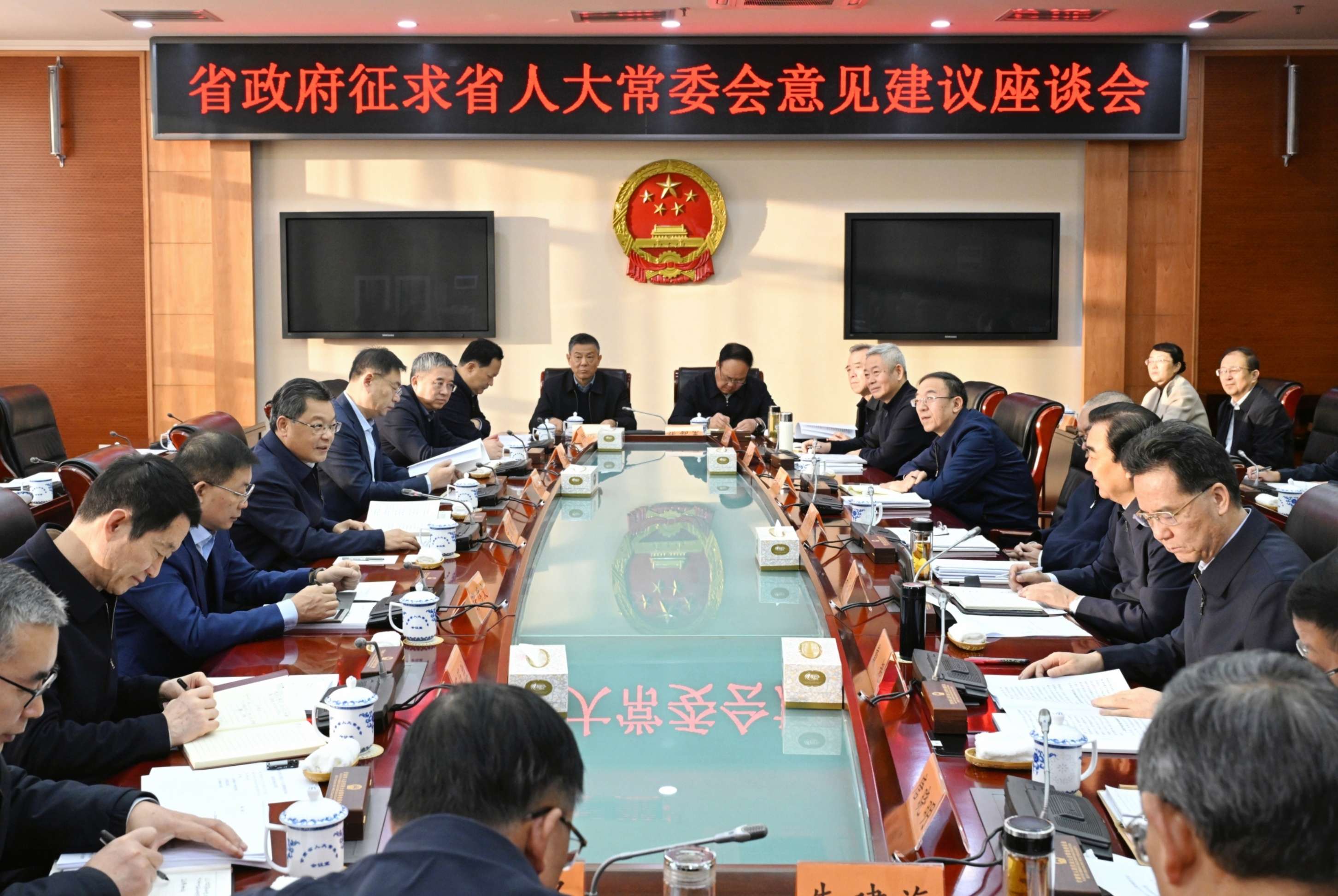 省委副书记、省长任振鹤1月8日来到省人大常委会机关座谈,征求对《政府工作报告(征求意见稿)》和“十五五”规划《纲要草案》的意见建议。