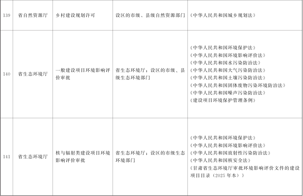 甘肃省行政许可事项清单(2025年版)