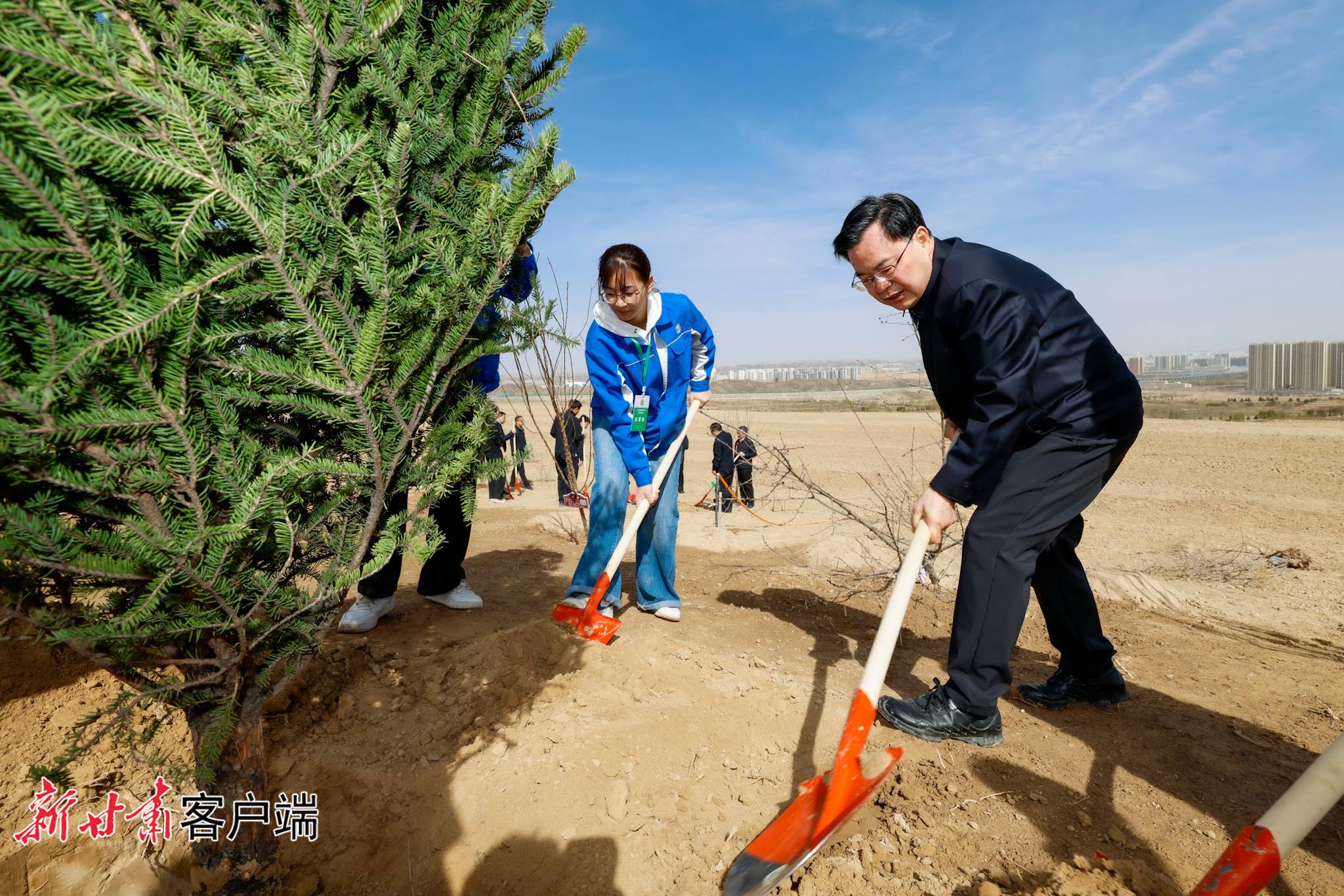 春风和煦,万物生长,生机勃勃。上午10时许,胡昌升、任振鹤、庄国泰、石谋军等省领导来到位于兰州新区的植树点,同干部群众、志愿者、部队官兵一同挥锹培土、提水浇灌,栽下国槐、云杉、文冠果、樟子松、杜梨、山桃、祁连圆柏等树种,一株株新苗迎风挺立,为大地增添了盎然生机。植树间隙,胡昌升同干部群众亲切交流,详细询问树苗品种、生长周期和日常养护等情况。