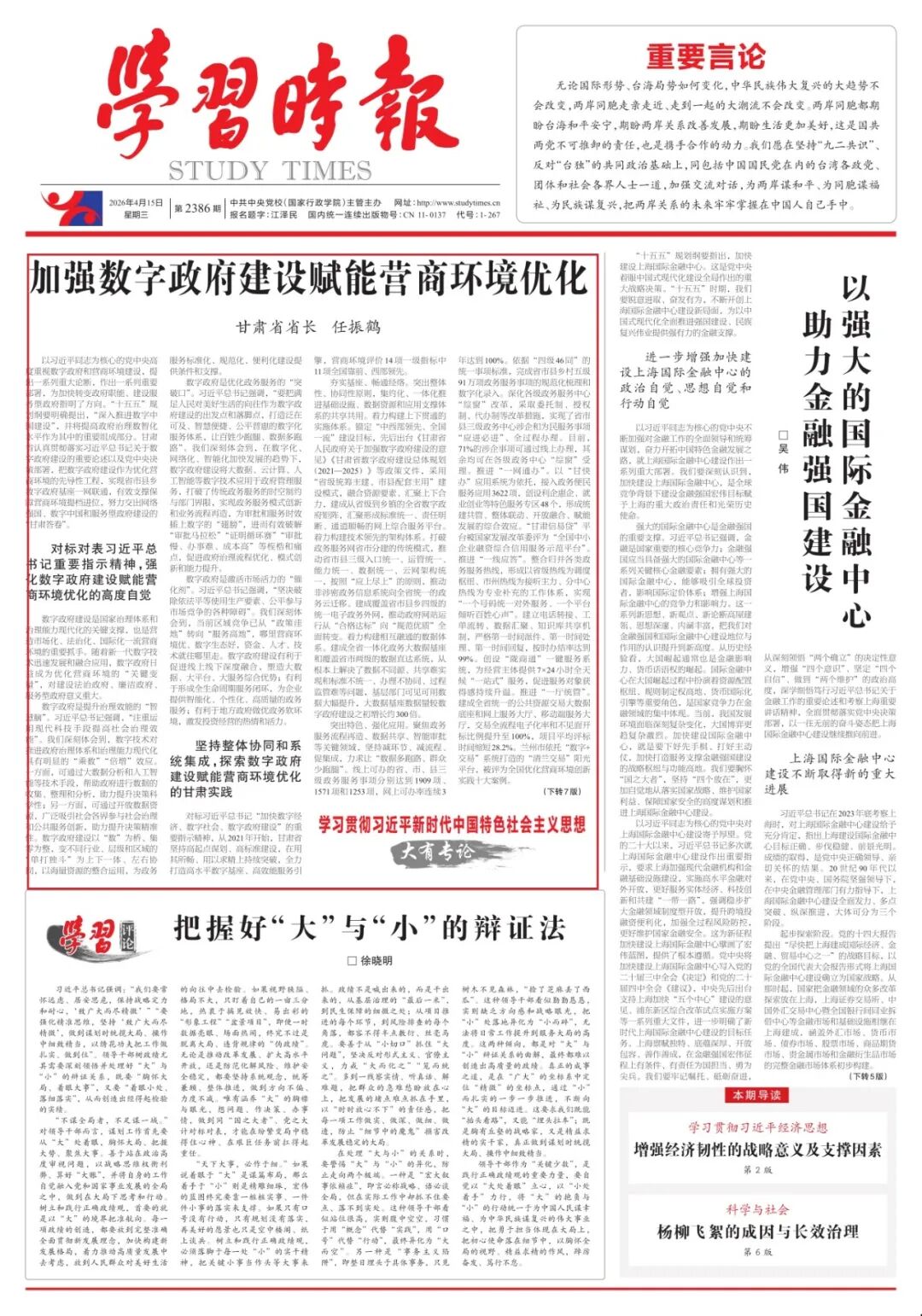 【学习时报】任振鹤:加强数字政府建设赋能营商环境优化